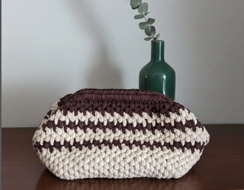 Este modelo es el epítome de la elegancia rústica para el invierno. Con su combinación de tonos crema y chocolate, me recuerda a un dulce de turrón artesano o a un chocolate caliente junto a la chimenea. Su estructura de clutch con punto de burbuja es la definición de sofisticación táctil.